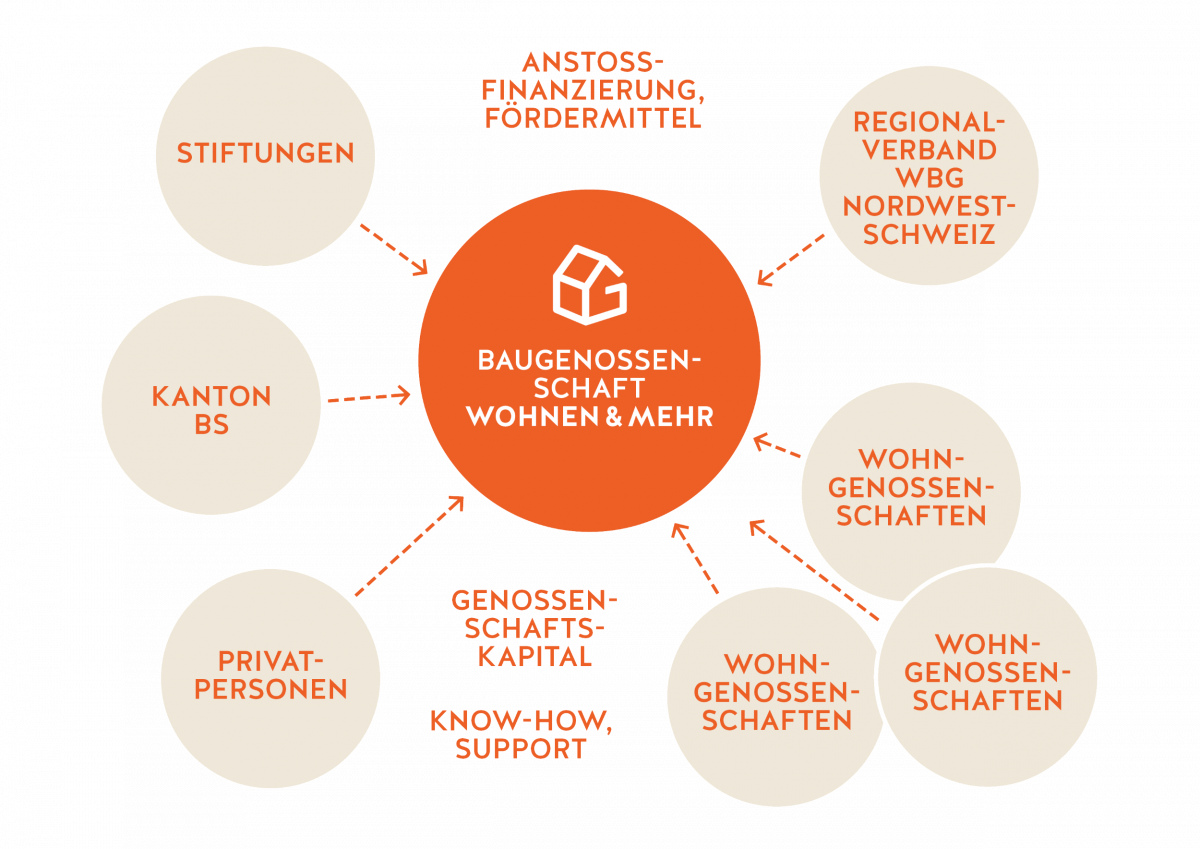 Neben Stiftungen, Firmen und Privatpersonen zählt die Baugenossenschaft wohnen&mehr 37 Wohngenossenschaften zu ihren Mitgliedern. Die aktuell 803 Mitglieder von wohnen&mehr bilden die Generalversammlung, die als oberstes Organ der Baugenossenschaft fungiert.